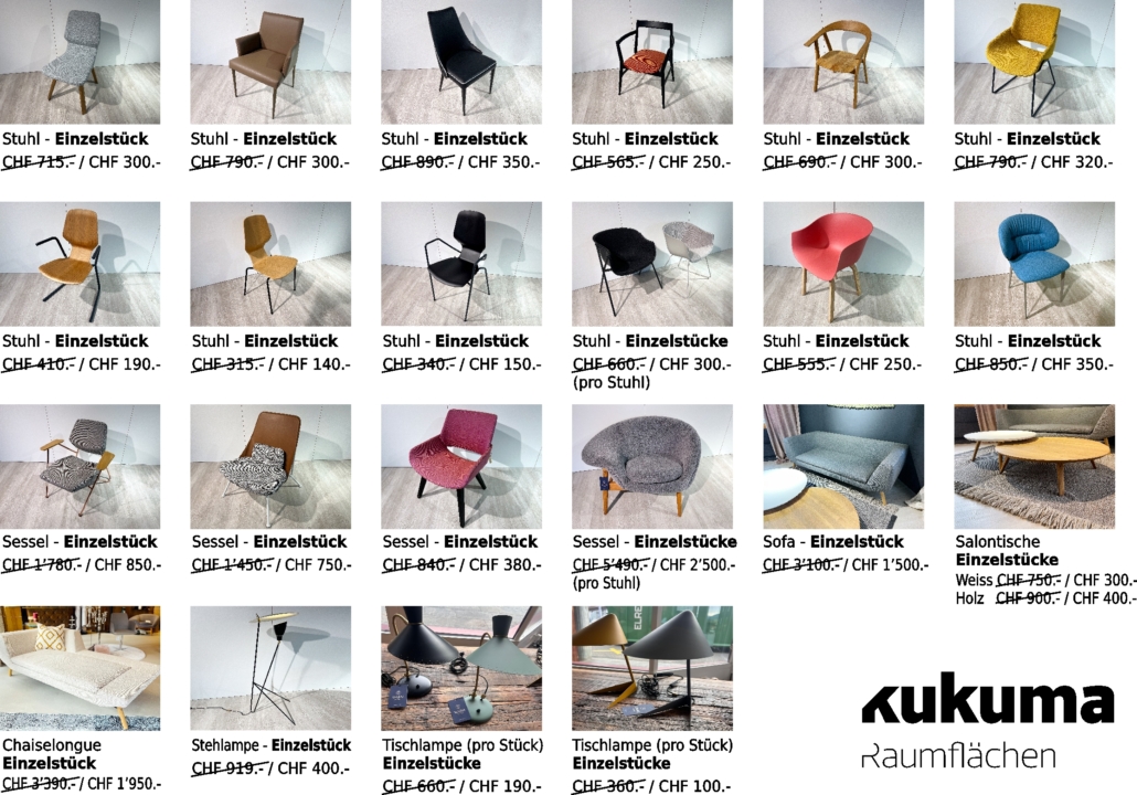 Unsere Ausstellungs-Sitzmöbel sind exklusive Designermöbel-Einzelstücke – jetzt zu sensationellen Preisen.